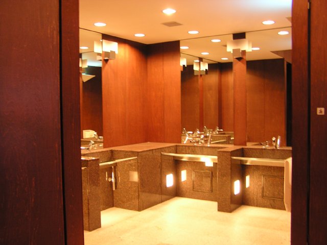 数ある名物の一つがこのデラックストイレ。男性用はさほどでもなかったんですが(デザイン的にはかっこよかったですが)、すごいのは女性用と聞いていたので、スパイ(=つま)に写真